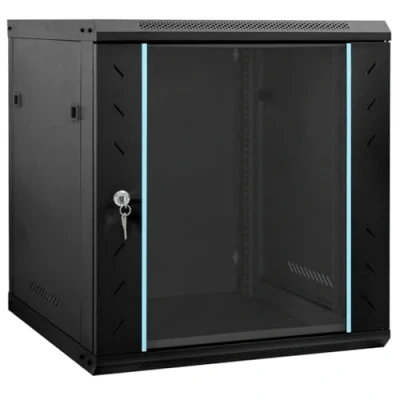 This wall-mounted network cabinet offers a secure and efficient solution for organizing and protecting your electronic components. With its industrial-inspired aesthetics, this cabinet is the perfect addition to modern offices and urban living spaces, combining a rugged look with practical functionality. Its robust steel and tempered glass construction not only presents a sleek, smooth surface but also a heat-resistant and secure storage solution, making it ideal for safeguarding sensitive equipment while seamlessly integrating into your workspace's decor. Durable Materials Featuring a primary steel construction, this network cabinet provides outstanding durability and heat resistance, making it ideal for protecting sensitive electronics. Its tempered glass panels offer a modern touch, allowing you to visually monitor internal equipment with ease while maintaining a strong, reliable structure. Practical Components Equipped with latch handles made from strong steel, this cabinet combines functionality with security. The sleek silver color of the handles complements the industrial design, further enhancing the cabinet's overall aesthetic. The secure locking mechanism adds an extra layer of protection for your valuable equipment. Sleek Design The industrial design, inspired by urban lofts and warehouses, features raw materials and a smooth texture, seamlessly blending into both office and living room settings. The visually appealing design ensures that the cabinet is not only a practical storage solution but also a stylish addition that enhances any room it occupies. Indoor Versatility This cabinet is exclusively designed for indoor use, making it an ideal addition to offices, server rooms, or other technology hubs within a home or professional environment. It enhances organization and efficiency by providing a compact, wall-mounted storage space tailored for network components. Simple Maintenance Easy care instructions ensure minimal upkeep is required. Simply wipe the cabinet with a damp cloth to maintain its sleek appearance and hygienic condition. This straightforward maintenance approach promotes longevity and consistent functionality across various environments.
