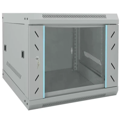 This wall-mounted network cabinet offers a secure and efficient solution for organizing and protecting your electronic components. With its industrial-inspired aesthetics, this cabinet is the perfect addition to modern offices and urban living spaces, combining a rugged look with practical functionality. Its robust steel and tempered glass construction not only presents a sleek, smooth surface but also a heat-resistant and secure storage solution, making it ideal for safeguarding sensitive equipment while seamlessly integrating into your workspace's decor. Durable Materials Featuring a primary steel construction, this network cabinet provides outstanding durability and heat resistance, making it ideal for protecting sensitive electronics. Its tempered glass panels offer a modern touch, allowing you to visually monitor internal equipment with ease while maintaining a strong, reliable structure. Practical Components Equipped with latch handles made from strong steel, this cabinet combines functionality with security. The sleek silver color of the handles complements the industrial design, further enhancing the cabinet's overall aesthetic. The secure locking mechanism adds an extra layer of protection for your valuable equipment. Sleek Design The industrial design, inspired by urban lofts and warehouses, features raw materials and a smooth texture, seamlessly blending into both office and living room settings. The visually appealing design ensures that the cabinet is not only a practical storage solution but also a stylish addition that enhances any room it occupies. Indoor Versatility This cabinet is exclusively designed for indoor use, making it an ideal addition to offices, server rooms, or other technology hubs within a home or professional environment. It enhances organization and efficiency by providing a compact, wall-mounted storage space tailored for network components. Simple Maintenance Easy care instructions ensure minimal upkeep is required. Simply wipe the cabinet with a damp cloth to maintain its sleek appearance and hygienic condition. This straightforward maintenance approach promotes longevity and consistent functionality across various environments.