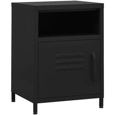 VidaXLThis nightstand exudes a touch of modern charm and makes an excellent addition to your current room decor. The bedside table is made of steel, making it durable and easy to clean. The cabinet has 1 open shelf and 1 door, which provide ample storage space to keep your DVDs, multimedia appliances, books and small essential items organised and within reach. There are levelers on the bottom to adjust the height according to your needs. Upgrade your interior with this elegant side table!