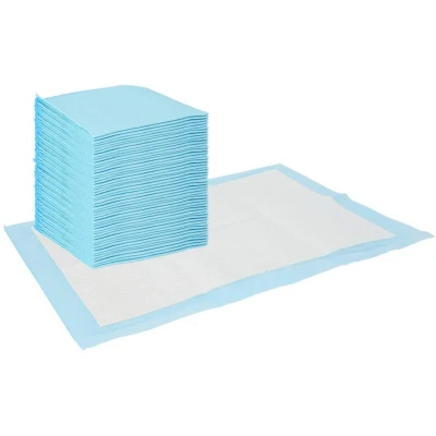 This non-woven fabric pet training pad offers a practical solution for pet owners seeking a clean and convenient way to manage pet care needs. Designed for indoor use, its rectangular shape fits most cages and training areas comfortably. The fresh blue and white color scheme complements various home decors, making it as stylish as it is functional. Ideal for puppies or small pets, these training pads provide a dependable surface that can handle daily use, ensuring pets have a designated spot for their natural needs. High Absorbency: These pet training pads are crafted with absorbent fluff pulp and SAP, ensuring excellent moisture retention and a dry surface. This makes them ideal for puppies or small pets still learning the ropes, ensuring the pads capture and lock in liquid quickly and efficiently. Leak-Proof Protection: Featuring a strong polyethylene barrier, these training pads prevent overflow and seepage, protecting floors and keeping messes contained. This leak-proof construction is crucial for maintaining a clean and hygienic environment for both pets and owners. Odor Control: Integrated odor control features ensure that unpleasant smells are neutralized, keeping living spaces fresh. This aspect of the pad is particularly beneficial in reducing the impact of pet use on indoor air quality, ensuring a harmonious co-existence between pets and family members. Lemon-Scented Freshness: These pads are infused with a gentle lemon scent that not only masks unpleasant odors but adds a refreshing fragrance to your home. This scent is embedded during manufacturing, ensuring consistent freshness throughout the pad's usage. Ease of Use: These pads are designed for single use, requiring no washing or maintenance. Post-use, they can be easily folded and disposed of, minimizing hassle and upkeep. This convenience reduces the time spent on pet care tasks and ensures a clean setup, ready for future use.