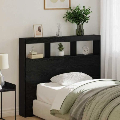 ManoManoGeneral description The modern Storage Headboard Cabinet with LED Lights is a perfect blend of style and functionality. Designed for a tidy bedroom, it features built-in shelves made from durable engineered wood. The smooth matte finish and vibrant LED lights create a welcoming atmosphere, while the USB ports add convenience for charging devices. Technical specifications Colour: Black oak Material: Engineered wood Finish: Matte Overall dimensions: 122 x 17 x 102 cm (L x W x H) Weight: 16.7 kg Power source: USB Voltage: 5 V Connectivity: USB (Universal Serial Bus) Lights color: Multicolour Indoor/Outdoor: Indoor only Assembly required: Yes EAN: 8721158941749 SKU: 869113 Compatibility and accessories Delivery contains: 1 x LED Headboard Installation Assembly required for setup. Usage Ideal for storing books, alarm clocks, and other essentials, keeping your sleeping area clutter-free. LED lights can be adjusted to create a cozy ambiance. USB ports provide convenient charging options for