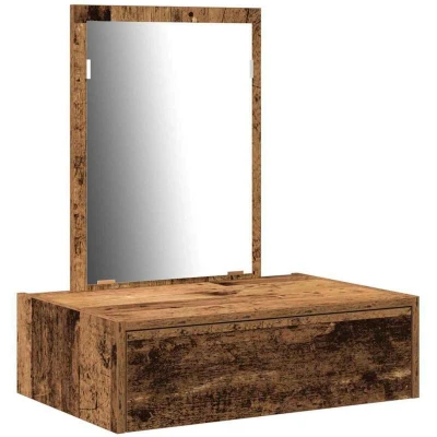 vidaXL Old Wood Storage Vanity Table Rustic Dressing with Mirror and Drawer 60x40x70 cm Rectangular Weathered Finish for Bedroom Grooming