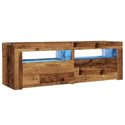 vidaXL old wood tv cabinet/stand with rgb led lights, storage compartments, and engineered for living room 120x35x40cm