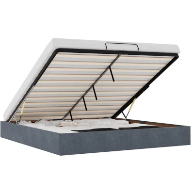 ManoManoGeneral description This ottoman bed frame seamlessly blends modern aesthetics with practical functionality, offering you both a storage solution and a comfortable sleep experience. The velvet fabric features a soft and smooth surface that delivers a delightful sensation against the skin, bringing you warmth and ultimate comfort. This bed frame features spacious storage underneath, maximizing your space without requiring additional floor area. It provides ample room for storing items such as extra duvets, pillows, and seasonal clothing, making it ideal for smaller or more confined spaces. The integrated hydraulic lift mechanism provides easy access to your belongings stored under the bed. With just a simple pull of the handle, the slat base lifts smoothly, allowing you to retrieve your items quickly and effortlessly. The bed frame includes a slatted base that provides excellent support and breathability for your mattress, eliminating the need for a box spring. Technical specifications