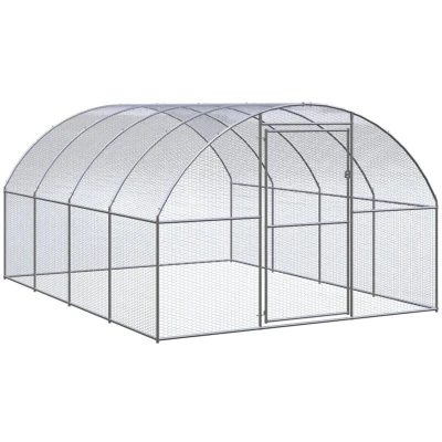 ManoManoGeneral description This practical and spacious chicken coop is an ideal outdoor enclosure for keeping your chickens, hens, ducks, and other small animals comfortable. Made of galvanised steel, this cage is stable, durable, and easy to clean, ensuring easy maintenance. Technical specifications Colour: Silver Material: Galvanised steel Overall dimensions: 3 x 4 x 2 m (W x D x H) Assembly required: Yes SKU: 3095464 Delivery contains 1 x Chicken coop 1 x Extension frame Other information