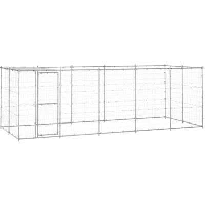 vidaXL Outdoor Dog Kennel Galvanised Steel with Roof 12.1 m²