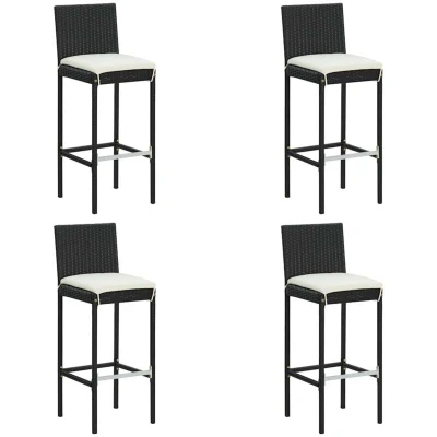 vidaXL Outdoor Garden Bar Stools with Cushions 4 pcs Set Black Poly Rattan Modern style UV Easy Assembly Cream Included