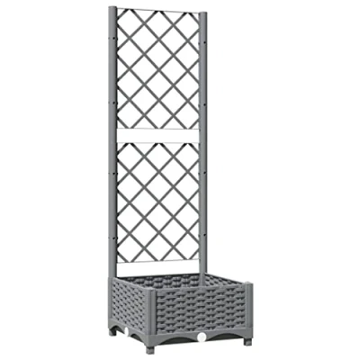 vidaXL Outdoor Garden Planter with Trellis Light Grey Square Plant Pot Bottom Box, Polypropylene Patio/Terrace Climbing Support