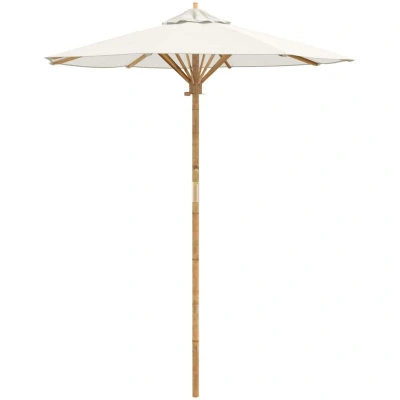 vidaXL outdoor patio umbrella/large sunshade cream polyester, wood, 180cm adjustable height, round design for garden/patio/deck