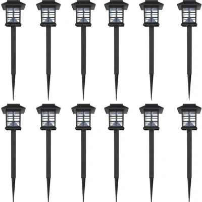 ManoManoGeneral description This 12-piece solar light set is perfect for decorative lighting in gardens, patios, paths, yards, and balconies. Made of quality plastic, these durable solar lights are designed for years of use. Equipped with a sensor, the solar lamps automatically turn on at dusk, providing a warm glow for 3-5 hours after an 8-hour charge from sunlight. The solar-powered design eliminates the need for wires, making them safer and more convenient to move, while also saving on electricity bills. Technical specifications Colour: Black Material: Plastic Size: 8.6 x 8.6 x 38 cm (L x W x H) Battery: Ni-MH 1.2 V, 600 mA Includes: 12 solar lights with LED bulbs and batteries Other information This product must not be disposed of with other household waste in the European Union.