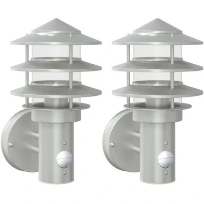 vidaXL Outdoor Wall Lights/Silver Stainless Steel/2 pcs with PIR Motion Sensors/IP44 Rating, Weatherproof