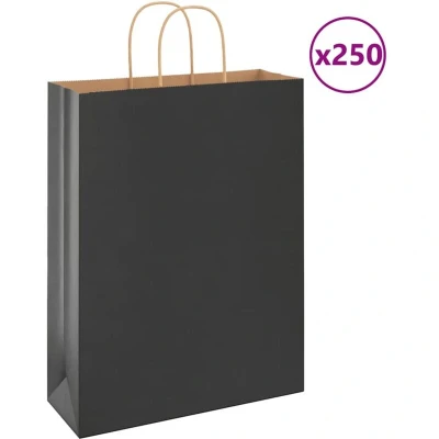 vidaXL Paper Bags 250 pcs with Handles Black 32x12x42 cm