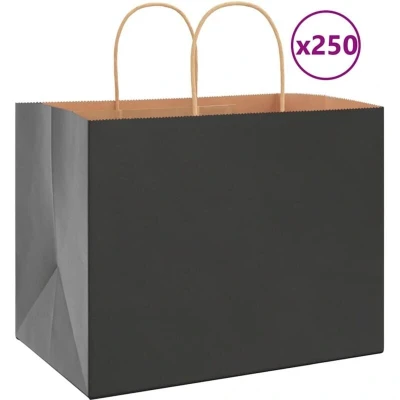 vidaXL Paper Bags 250 pcs with Handles Black 32x22x24 cm