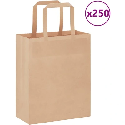 vidaXL Paper Bags 250 pcs with Handles Brown 18x8x22 cm