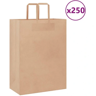 vidaXL Paper Bags 250 pcs with Handles Brown 32x17x44 cm