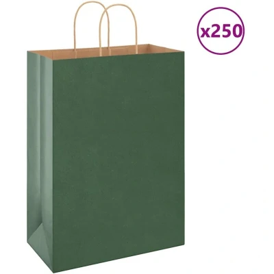vidaXL Paper Bags 250 pcs with Handles Green 32x17x44 cm