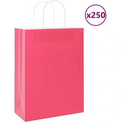 vidaXL Paper Bags 250 pcs with Handles Pink 26x12x35 cm