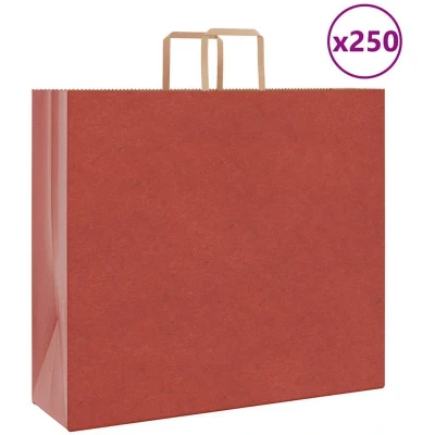 ManoManoGeneral description The paper bags offer a sustainable packaging option for a wide variety of uses. Made from durable and recyclable kraft paper, these bags provide an eco-friendly alternative to plastic bags, helping to reduce plastic waste while being strong enough for everyday use. Technical specifications Colour: Red Handle colour: Brown Material: 120g/sqm kraft paper Dimensions (without handles): 54 x 15 x 49 cm (L x W x H) Max. weight capacity (each): 10 kg With paper rope handles Quantity: 250 paper bags Usage The versatility of these kraft paper bags makes them suitable for various applications, including: Gift bags Party bags Shopping bags Takeaway bags Waste bags They can also be easily decorated or personalized to match any theme or event. Other information
