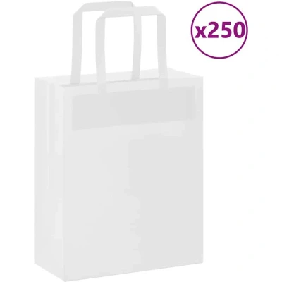vidaXL Paper Bags 250 pcs with Handles White 18x8x22 cm