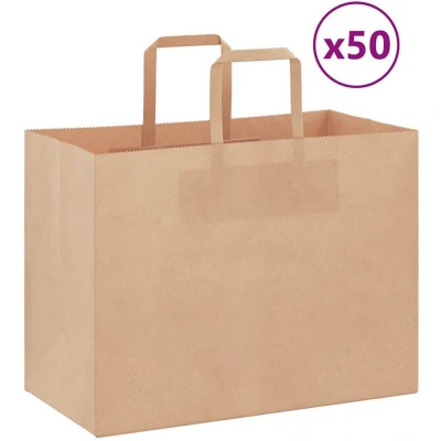 ManoManoGeneral description The paper bags offer a sustainable packaging option for a wide variety of uses. Made from natural kraft paper, these bags are durable and recyclable, providing an eco-friendly alternative to plastic bags. They are designed to withstand everyday use while helping to reduce plastic waste. Technical specifications Colour: Brown Handle colour: Brown Material: 80g/sqm kraft paper Dimensions (without handles): 32 x 17 x 25 cm (L x W x H) Max. weight capacity (each): 7 kg With paper rope handles Delivery contains: 50 x Paper bag Usage The versatility of kraft paper bags makes them suitable for various applications, including: Gift bags Party bags Shopping bags Takeaway bags Waste bags These bags can also be easily decorated or personalized to match any theme or event. Other information