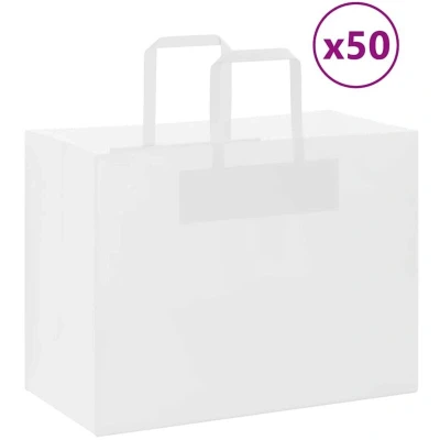 vidaXL Paper Bags 50 pcs with Handles White 32x17x25 cm