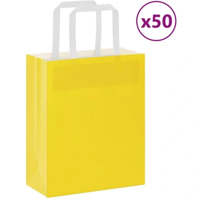 vidaXL Paper Bags 50 pcs with Handles Yellow 18x8x22 cm