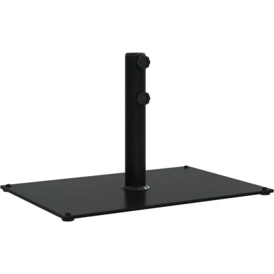 General description This parasol base offers a sturdy and reliable foundation to ensure your umbrella remains stable and upright. It features a durable steel construction, ensuring exceptional stability to keep your parasol securely in place and prevent it from tipping over, even in windy conditions. Technical specifications Colour: Black Base material: Steel Tube material: Iron Base dimensions: 60.5 x 41 x 38 cm (L x W x H) Tube dimensions: 5.5 x 35 cm (Diameter x H) Suitable pole diameter: 32 / 38 / 48 mm Weight: 15 kg With double knob With 4 adjustable foot pads Assembly required: Yes Compatibility and accessories Compatible with umbrella poles of diameter 32 mm, 38 mm, and 48 mm Includes 3 pole adaptors Installation Easy to install with a tightening knob for securing your umbrella to the base firmly Other information