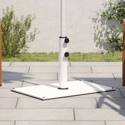 General description This parasol base offers a sturdy and reliable foundation to ensure your umbrella remains stable and upright. It features a durable steel construction, providing exceptional stability to keep your parasol securely in place and prevent it from tipping over, even in windy conditions. Technical specifications Colour: White Base material: Steel Tube material: Iron Base dimensions: 60.5 x 41 x 38 cm (L x W x H) Tube dimensions: 5.5 x 35 cm (Diameter x H) Suitable pole diameter: 32 / 38 / 48 mm Weight: 25 kg With double knob With 4 adjustable foot pads Assembly required: Yes Compatibility and accessories Compatible with umbrella poles of diameter 32 mm, 38 mm, and 48 mm. Includes 3 pole adaptors for versatility. Installation Easy to install with a tightening knob for securing your umbrella to the base firmly. Other information