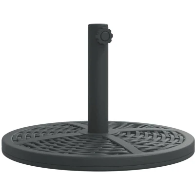 VidaXLThis parasol base offers a sturdy and reliable foundation to ensure your umbrella remains stable and upright. Strong and stable base: This parasol base features a durable plastic shell filled with concrete, ensuring exceptional stability to keep your parasol securely in place and prevent it from tipping over, even in windy conditions.Easy to install: This umbrella base has a tightening knob for securing your umbrella to the base more firmly.Compatible with multiple pole sizes: This umbrella base comes with 2 pole adaptors, allowing it to fit umbrella poles with a diameter of 38 and 48 mm.Beautiful rattan pattern: Designed with rattan patterns, this parasol holder brings a touch of timeless elegance to your outdoor area.