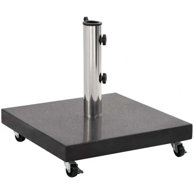 VidaXLOur solid granite parasol base provides a firm and sturdy base for holding your umbrella and keeping it from tipping over or being blown away. Made of strong granite and with a weight of 30 kg, this umbrella weight plate is extremely stable and ensures your parasol stand still even in windy weather. The umbrella holder has 2 locking bolts to keep the umbrella pole in place. One adapter is included, making the parasol base holder suitable for parasol poles with diameters of 38/48 mm. Additionally, with 4 castors, the parasol base can be moved freely.