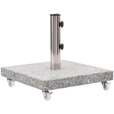 VidaXLOur solid granite parasol base provides a firm and sturdy base for holding your umbrella and keeping it from tipping over or being blown away. Made of strong granite and with a weight of 30 kg, this umbrella weight plate is extremely stable and ensures your parasol stand still even in windy weather. The umbrella holder has 2 locking bolts to keep the umbrella pole in place. One adapter is included, making the parasol base holder suitable for parasol poles with diameters of 38/48 mm. Additionally, with 4 castors, the parasol base can be moved freely.