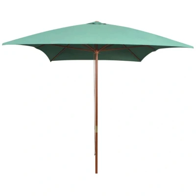 General description This elegant wooden garden parasol is perfect for creating shade and protecting you from the sun's harmful UV rays while enjoying time with family or friends on your patio or in the garden. It can be placed on your existing stand or in the center hole of a table and is designed for easy opening and closing. Technical specifications Cover colour: Green Frame material: Hardwood With 6 laminated bamboo ribs and hardwood stretchers Cover size: 200 x 300 cm (W x L) Pole diameter: 38 mm Height: 2.5 m With air vent Single pulley system Fabric: Polyester: 100% Other information