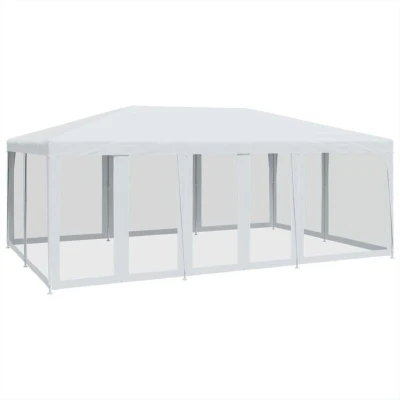 vidaXL Party Tent with 10 Mesh Sidewalls White 6x4 m HDPE