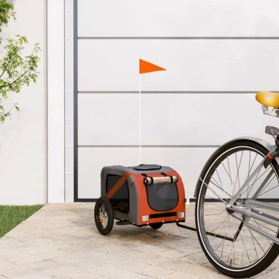 vidaXL Pet Bike Trailer Orange and Grey Oxford Fabric Iron