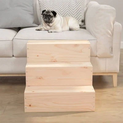VidaXLThis wooden pet stair makes it easier for your pet to get up and down higher places. Solid pine wood: Solid pine wood is a beautiful natural material. Pine wood has a straight grain, and the knots give the material its signature, rustic look.Sturdy frame: The wooden frame ensures sturdiness and stability.Pet-friendly design: You can place the cat stair near the sofa or bed to help small, elderly or sick dogs and even cats get up and down easily. Note:Each product comes with an assembly manual in the box for easy assembly.