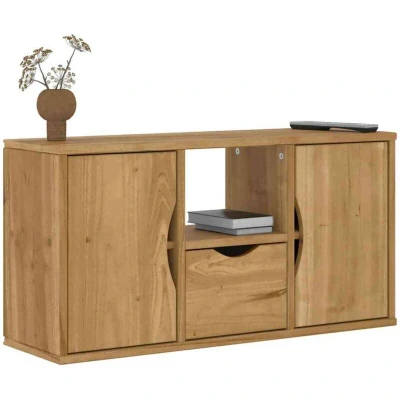 VidaXLThis wooden TV cabinet with ample storage space is a practical and eye-catching addition to your living room or bedroom. Robust and stable material: Solid pinewood is known for its strength and durability. Its straight grains and distinctive knots contribute to its rustic charm.Ample storage space: This TV cabinet provides ample storage space for keeping your magazines, books, DVDs, and multimedia devices well-organised and within reach.Stable and sturdy tabletop: The sturdy top is ideal for placing your TV and stereo systems or some decorative items like vases or potted plants.Easy to maintain: The TV stand is easy to clean with a damp cloth and requires less maintenance. Good to know:This storage furniture perfectly complements other pieces in the ODDA series, allowing you to either match the style seamlessly or combine them for larger storage solutions.