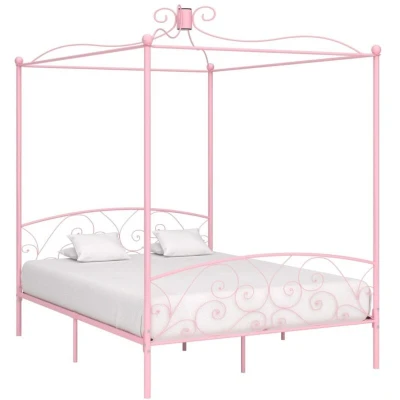 vidaXL Pink Metal Canopy Bed Frame 160x200cm Sturdy Bedroom Furniture Double with Slatted Base for Curtains/Mosquito Net
