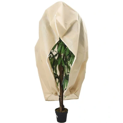 ManoManoGeneral description This plant fleece cover with drawstring and zip provides an ideal way to protect your plants or crops from winter cold. It is designed to be breathable and durable, allowing sunlight, air, and moisture to reach the plants for healthy growth. Technical specifications Material: Non-woven fabric (100% polypropylene) Weight: 70 g/m² Dimensions: 3.14 x 2.5 m (W x H) Drawstring diameter: 3 mm Features: Side zip for easy access Usage Provides protection against harsh weather conditions such as frost, sleet, and snow. Protects plants from birds, insects, poultry, and other animals throughout the growing season. Suitable for a wide range of plants including saplings, fruit seedlings, vegetables, flowers, small shrubs, and tropical plants. Other information The plant is not included. Colour: Beige SKU: 364880