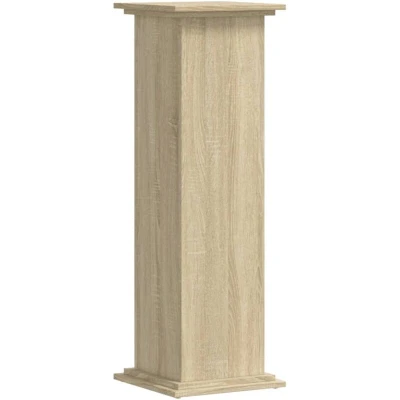 ManoManoGeneral description This plant stand is perfect for showcasing your plants and other decorative items. It features a timeless design with clean, simple lines that add a modern touch to your interior decor. Technical specifications Colour: Sonoma oak Material: Engineered wood Dimensions: 33 x 33 x 100 cm (W x D x H) Max. load capacity: 60 kg Suitable for indoor use Assembly required: Yes Installation To prevent tipping, this product must be used with the provided wall attachment device. Usage Easy to clean: The smooth surface can be easily wiped with a damp cloth. Hollow design: The stand can be filled with sand to enhance stability. Other information