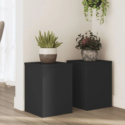 vidaXL Plant Stands Patio Pot Flower Stand 2 pcs Black Engineered Wood, 25x25x35 cm, 50 kg Capacity, Modern Minimalist Design for Indoor & Outdoor Use