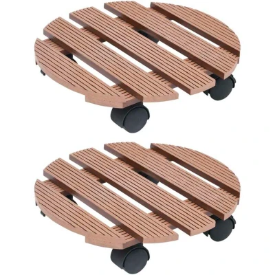 General description Effortlessly move your potted plants around with these handy plant trolleys! Made of durable wood-plastic composite (WPC), these plant caddies are weather-resistant and suitable for outdoor use. The 360° rotatable castors allow for easy movement, while two castors feature brakes for added stability. Technical specifications Colour: Brown Material: WPC Dimensions: Ø30 x 7.5 cm (Dia. x H) Load capacity: 100 kg Assembly required: Yes Delivery contains 2 x Plant trolley Other information