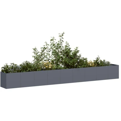 ManoManoGeneral description Enhance your outdoor spaces with this stylish planter, perfect for gardens, balconies, and patios. Made from durable cold-rolled steel, this planter features a modern aesthetic that blends seamlessly with outdoor decor while providing ample space for a variety of plants. Technical specifications Colour: Anthracite Material: Cold-rolled steel Overall dimensions: 360 x 40 x 40 cm (W x D x H) Bottom type: Open bottom Assembly required: Yes Usage The deep and wide raised bed offers plenty of space for soil, providing an ideal growing environment for plants, vegetables, herbs, and flowers. The open bottom design allows for efficient drainage of excess water, preventing waterlogging and promoting healthy plant growth. Other information This planter does not include a bottom.