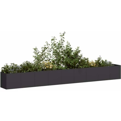 ManoManoGeneral description Enhance your outdoor spaces with this stylish planter, perfect for gardens, balconies, and patios. Made from durable cold-rolled steel, this planter features a modern aesthetic and natural finish that blends seamlessly with outdoor decor. Technical specifications Material: Cold-rolled steel Colour: Black Overall dimensions: 360 x 40 x 40 cm (W x D x H) Bottom type: Open bottom Assembly required: Yes Usage The deep and wide raised bed offers ample space for soil, providing an ideal growing environment for plants, vegetables, herbs, and flowers. The open bottom design allows for efficient drainage of excess water, preventing waterlogging and promoting healthy plant growth. Other information This planter does not include a bottom.