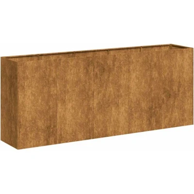 Enhance your outdoor spaces with this stylish planter, perfect for gardens, balconies, and patios. Durable material: Weathering steel is anti-corrosive by its very nature. It develops a rusty protective layer against corrosion when first exposed to atmospheric conditions. Thus, you don't need to paint it. This can help you save on maintenance and repair costs. The distinctive brown colour on the weathering steel will surely be an eye-catcher. Finally, weathering steel is exceptionally durable and will stand up to the test of time.Ample space: The deep and wide raised bed offers plenty of space for soil, providing an ideal growing environment for plants, vegetables, herbs, and flowers. Its generous size allows for versatile planting options, perfect for any garden or outdoor space.Enhanced stability: Equipped with interior support brackets, this flower box ensures reliable sturdiness and stability. The reinforced design keeps the structure secure, even when filled with soil, offering long-term durability for your gardening needs.Decorative appeal: This planter box is designed to showcase your favourite plants or flowers while adding a stylish touch to your garden or patio. Its modern aesthetic and natural finish make it a standout decorative element that blends seamlessly with outdoor decor.Open bottom design: Featuring an open bottom, the planter allows for efficient drainage of excess water, preventing waterlogging. The design also promotes healthy plant growth by letting roots extend freely into the soil for better nutrient absorption. Good to know:This product is not rusted yet and has a normal metal color when you receive it, but rust will develop over time. You can speed up the rusting process by spraying it with soapy water or salt water. To keep your clothes stain-free, avoid contact with the developing rust layer.This planter does not include a bottom.