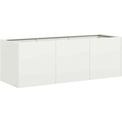 ManoManoGeneral description Enhance your outdoor spaces with this stylish planter, perfect for gardens, balconies, and patios. Made from durable cold-rolled steel, this planter features a modern aesthetic and natural finish that blends seamlessly with outdoor decor. Technical specifications Material: Cold-rolled steel Colour: White Overall dimensions: 120 x 40 x 40 cm (W x D x H) Bottom type: Open bottom Assembly required: Yes SKU: 860676 Usage Ample space for soil, ideal for plants, vegetables, herbs, and flowers. Open bottom design allows for efficient drainage of excess water, preventing waterlogging. Promotes healthy plant growth by allowing roots to extend freely into the soil for better nutrient absorption. Other information This planter does not include a bottom.