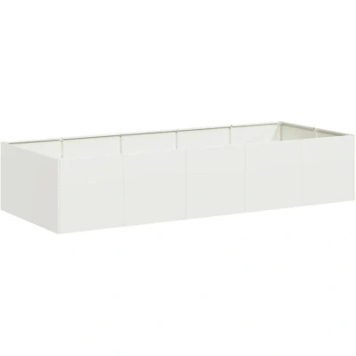 ManoManoGeneral description Enhance your outdoor spaces with this stylish planter, perfect for gardens, balconies, and patios. Made from durable cold-rolled steel, this planter features a modern aesthetic and natural finish that blends seamlessly with outdoor decor. Technical specifications Material: Cold-rolled steel Colour: White Overall dimensions: 200 x 80 x 40 cm (W x D x H) Bottom type: Open bottom Assembly required: Yes SKU: 860753 Usage Ample space for soil, ideal for growing plants, vegetables, herbs, and flowers. Open bottom design allows for efficient drainage of excess water, preventing waterlogging. Interior support brackets enhance stability, ensuring long-term durability. Other information