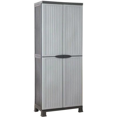 keep your house clean and well-organised with this cabinet. It is ideal for using at home, office, garage, and storage room.. This storage cabinet is made of plastic, making it easy to clean. The cabinet offers ample storage space to keep your essential items organised and within reach. Featuring adjustable shelves, it allows you to adjust as per your preference. The home organiser has a compact design and will make the most use of limited space. Colour: Grey Material: Plastic Dimensions: 68 x 39 x 171.5 cm (W x D x H) With 2 doors and 4 adjustable shelves Load capacity per shelf: 20 kg Lockable with padlock (not included) Easy mounting (mounting materials included) Assembly required: Yes WARNING: This product must be mounted to the wall through the wall hole to prevent possible tipping/overturning Legal Documents: More details about preventing your furniture from tipping over can be found here SKU: 337896 EU responsible party Haba Trading B.V. Mary Kingsleystraat 1 5928SK Venlo The
