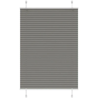 Elevate your room's style and functionality with this pleated blind, offering privacy and elegance. Durable and low maintenance: Made from 100% polyester, the pleated blind is built to last and resist wear and tear. They are also easy to clean, typically requiring light dusting or wiping with a damp cloth.Privacy and sun protection: The blind is not transparent but also not fully darkening, providing optimal privacy and glare protection with its pleated fabric. You can adjust the level of privacy by moving it up or down.Two assembly ways: You can attach the pleated blind to the wall or window with screws or without drilling using clamping brackets, depending on your needs.Elegant design: Thanks to its sleek and modern pattern design, this pleated blind effortlessly complements a variety of room decor. You can use it in the living room, bedroom, office, and so on. Warning: Keep cords out of the reach of young children. Cords may become wrapped around a child’s neck. Good to know:Before buying blinds, start by measuring your window glass. Just a friendly tip: the fabric is a bit narrower than the total width, including the brackets.To make sure your new blinds provide complete coverage, just add 0,6 cm to the width of the window glass when calculating what to order.