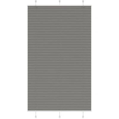ManoManoGeneral description Elevate your room's style and functionality with this pleated blind, offering privacy and elegance. Made from 100% polyester, the pleated blind is durable, low maintenance, and easy to clean, typically requiring only light dusting or wiping with a damp cloth. The blind provides optimal privacy and glare protection with its pleated fabric, allowing you to adjust the level of privacy by moving it up or down. Its sleek and modern design complements a variety of room decor, making it suitable for use in living rooms, bedrooms, offices, and more. Technical specifications Colour: Anthracite Material: 100% polyester Total height: 200 cm Total width: 115 cm Fabric width: 114.4 cm (tolerance ±2mm) Window frame thickness range: 0.5-2.3 cm Assembly required: Yes Mounting accessories included Compatibility and accessories Two assembly methods: with screws or without drilling using clamping brackets Usage Before purchasing, measure your window glass. To ensure complete