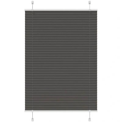 ManoManoGeneral description Elevate your room's style and functionality with this pleated blind, offering privacy and elegance. Made from 100% polyester, the pleated blind is durable, low maintenance, and easy to clean, typically requiring light dusting or wiping with a damp cloth. The blind provides optimal privacy and glare protection with its pleated fabric, allowing you to adjust the level of privacy by moving it up or down. Its sleek and modern design complements a variety of room decor, making it suitable for use in living rooms, bedrooms, offices, and more. Technical specifications Colour: Black Material: 100% polyester Total height: 150 cm Total width: 90 cm Fabric width: 89.4 cm (tolerance ±2mm) With difference: 0.6 cm Window frame thickness range: 0.5-2.3 cm Assembly required: Yes Compatibility and accessories Two assembly methods: with screws or without drilling using clamping brackets Mounting accessories included Usage Before buying blinds, measure your window glass. To ensure